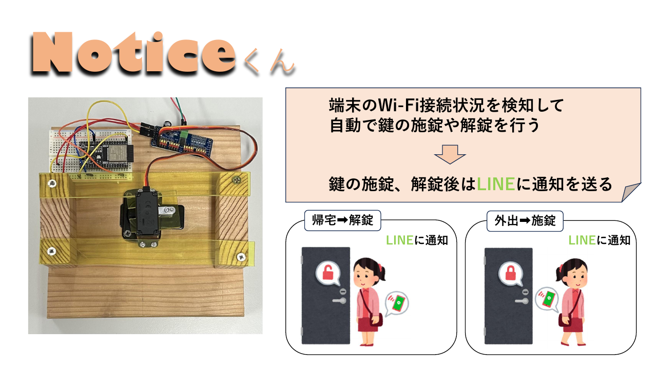 Noticeくん 端末のWi-Fi接続状況を検知して自動で鍵の施錠や開錠を行う |