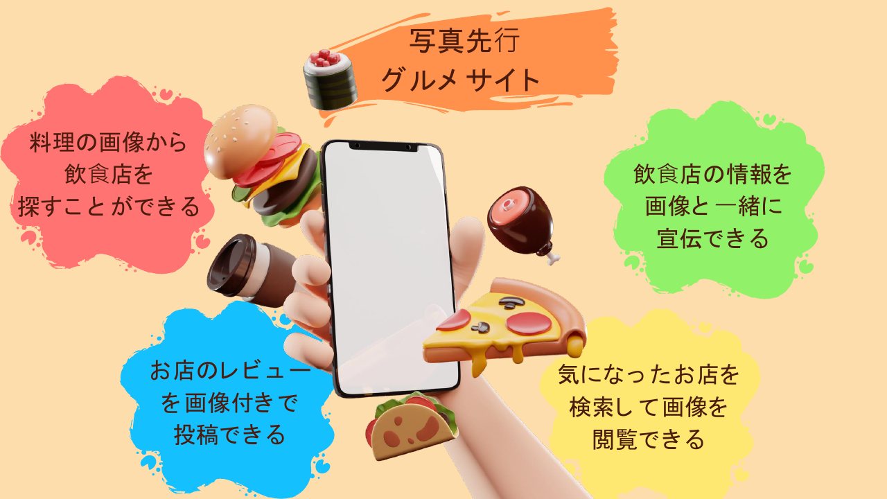 写真先行グルメサイト 料理の画像から飲食店を探すことができる. |